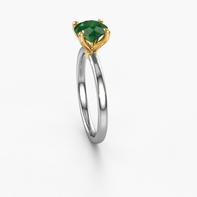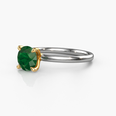 The ring shown above is called the Crystal RND 1, we call this a solitaire ring because it contains a single gemstone. The engagement ring is made in 14 Carat white gold and has a round emerald of 6.8 mm. This classic white gold solitaire ring with exquisite round emerald is a beautiful engagement ring. The open prong setting allows light to strike the gemstone from various angles. The ring also stands out because of the high positioning of the gemstone. Because diamonds symbolize true love and purity, they make the perfect gift for the love of your life. The symbol of eternal love is the centerpiece of this solitaire ring. Like a diamond, all other types of precious metal have their own attributed symbolic meaning. You can compile the solitaire engagement ring yourself in various precious metal combinations. This one has the combination of 14 Carat white gold with gold. Each piece of jewelry is made by a team of passionate goldsmiths and jewel designers. This will make your crown jewel truly eye-catching.After receiving your order, our goldsmiths will passionately start the creative process of making your engagement ring in our own studio. Because we don't have a big stockpile, these costs will not be passed on to you. Our pricing is proof of that! We offer top quality jewels at lowest price, guaranteed.Do you have a specific ring in mind? One you came across somewhere. Please feel free to tell us your wishes and we will turn your design into a unique engagement ring. You can follow the development of your ring design because we use 3D drawings. This gives you a realistic preview of your design. We will gladly send you a non-binding offer, based on a fair price/ quality ratio. It will amaze you.To make it easier for you, we offer a 30 day return policy. Check our terms and conditions.