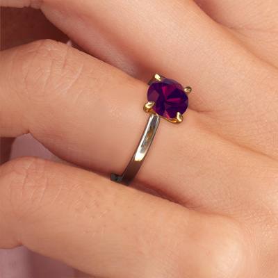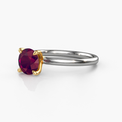 The ring shown above is called the Crystal RND 1, we call this a solitaire ring because it contains a single gemstone. The engagement ring is made in 14 Carat white gold and has a round rhodolite of 6.8 mm. This classic white gold solitaire ring with exquisite round rhodolite is a beautiful engagement ring. The open prong setting allows light to strike the gemstone from various angles. The ring also stands out because of the high positioning of the gemstone. Because diamonds symbolize true love and purity, they make the perfect gift for the love of your life. The symbol of eternal love is the centerpiece of this solitaire ring. Like a diamond, all other types of precious metal have their own attributed symbolic meaning. You can compile the solitaire engagement ring yourself in various precious metal combinations. This one has the combination of 14 Carat white gold with gold. Each piece of jewelry is made by a team of passionate goldsmiths and jewel designers. This will make your crown jewel truly eye-catching.After receiving your order, our goldsmiths will passionately start the creative process of making your engagement ring in our own studio. Because we don't have a big stockpile, these costs will not be passed on to you. Our pricing is proof of that! We offer top quality jewels at lowest price, guaranteed.Do you have a specific ring in mind? One you came across somewhere. Please feel free to tell us your wishes and we will turn your design into a unique engagement ring. You can follow the development of your ring design because we use 3D drawings. This gives you a realistic preview of your design. We will gladly send you a non-binding offer, based on a fair price/ quality ratio. It will amaze you.To make it easier for you, we offer a 30 day return policy. Check our terms and conditions.
