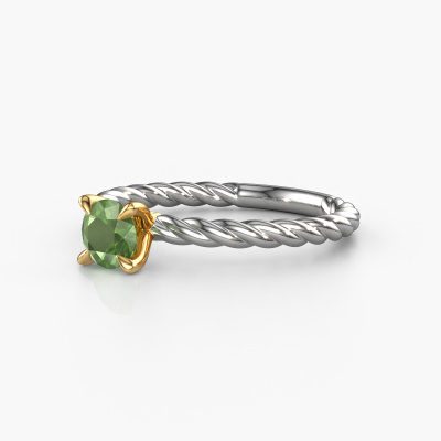 The ring shown above is called the Twanna, we call this a solitaire ring because it contains a single gemstone. The engagement ring is made in 14 Carat white gold and has a round tourmaline green of 5 mm. This fantasy white gold solitaire ring with exquisite round tourmaline green is a beautiful engagement ring. The open prong setting allows light to strike the gemstone from various angles. The ring also stands out because of the high positioning of the gemstone. Because diamonds symbolize true love and purity, they make the perfect gift for the love of your life. The symbol of eternal love is the centerpiece of this solitaire ring. Like a diamond, all other types of precious metal have their own attributed symbolic meaning. You can compile the solitaire engagement ring yourself in various precious metal combinations. This one has the combination of 14 Carat white gold with gold. Each piece of jewelry is made by a team of passionate goldsmiths and jewel designers. This will make your crown jewel truly eye-catching.After receiving your order, our goldsmiths will passionately start the creative process of making your engagement ring in our own studio. Because we don't have a big stockpile, these costs will not be passed on to you. Our pricing is proof of that! We offer top quality jewels at lowest price, guaranteed.Do you have a specific ring in mind? One you came across somewhere. Please feel free to tell us your wishes and we will turn your design into a unique engagement ring. You can follow the development of your ring design because we use 3D drawings. This gives you a realistic preview of your design. We will gladly send you a non-binding offer, based on a fair price/ quality ratio. It will amaze you.To make it easier for you, we offer a 30 day return policy. Check our terms and conditions.