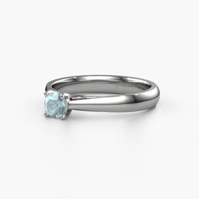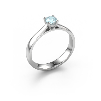 The ring shown above is called the Sam, we call this a solitaire ring because it contains a single gemstone. The engagement ring is made in 14 Carat white gold and has a round aquamarine of 4.2 mm. This classic white gold solitaire ring with exquisite round aquamarine is a beautiful engagement ring. The open prong setting allows light to strike the gemstone from various angles. The ring also stands out because of the high positioning of the gemstone. Because diamonds symbolize true love and purity, they make the perfect gift for the love of your life. The symbol of eternal love is the centerpiece of this solitaire ring. Like a diamond, all other types of precious metal have their own attributed symbolic meaning. You can compile the solitaire engagement ring yourself in various precious metal combinations. This one has the combination of 14 Carat white gold with white gold. Each piece of jewelry is made just for you, with attention to detail and design.After receiving your order, our goldsmiths will passionately start the creative process of making your engagement ring in our own studio. Because we don't have a big stockpile, these costs will not be passed on to you. Our pricing is proof of that! We offer top quality jewels at lowest price, guaranteed.Our team adds new designs to our online collection daily. Our designers and goldsmiths work together in creating the best design. We strive to offer a diverse collection of jewels. Perhaps you have a specific jewel design in mind. One you came across somewhere. Please contact us for a free consultation. We will make you an offer, based on a fair price/ quality ratio, that will baffle you.To make it easier for you, we offer a 30 day return policy. Check our terms and conditions.
