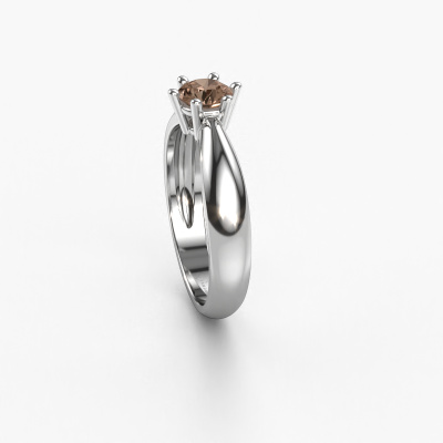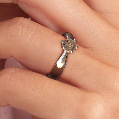 The ring shown above is called the Fay, we call this a solitaire ring because it contains a single gemstone. The engagement ring is made in 14 Carat white gold and has a round brown diamond of 0.50 crt. This traditional white gold solitaire ring with exquisite round brown diamond is a beautiful engagement ring. The open prong setting allows light to strike the gemstone from various angles. The ring also stands out because of the high positioning of the gemstone. Because diamonds symbolize true love and purity, they make the perfect gift for the love of your life. The symbol of eternal love is the centerpiece of this solitaire ring. Like a diamond, all other types of precious metal have their own attributed symbolic meaning. You can compile the solitaire engagement ring yourself in various precious metal combinations. This one has the combination of 14 Carat white gold with white gold. Each piece of jewelry is made just for you by our master goldsmiths in our own studio.By using a combination of the latest modern techniques, combined with ancient crafting, we can make all our engagement rings in our own studio. Each jewel is made to order. This is advantageous because we can offer you a price you won't find anywhere else.Have you found a specific engagement ring somewhere which you would like to give to your loved one? Please feel free to express your wishes to our jewel designers because we would be honoured to turn your design into a traditional engagement ring. You can follow the development of your ring design because we use 3D drawings. This gives you a realistic preview of how your design will look. You can also preorder a dummy. A dummy is a plastic ring, which can be shaped according your ring design. You can try it on and check if its width and size are suitable for you. We will gladly send you a non-binding offer, based on a fair price/ quality ratio. It will amaze you, considering the quality of the ring and gemstones.To make it easier for you, we offer a 30 day return policy. Check our terms and conditions.