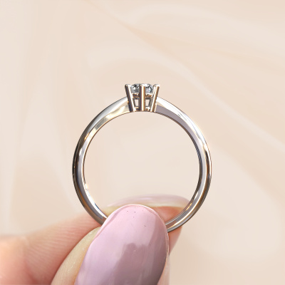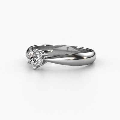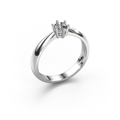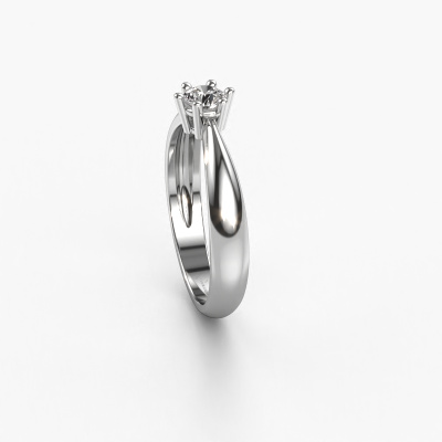 The ring shown above is called the Fay, we call this a solitaire ring because it contains a single gemstone. The engagement ring is made in 14 Carat white gold and has a round diamond of 0.30 crt. This traditional white gold solitaire ring with exquisite round diamond is a beautiful engagement ring. The open prong setting allows light to strike the gemstone from various angles. The ring also stands out because of the high positioning of the gemstone. Because diamonds symbolize true love and purity, they make the perfect gift for the love of your life. The symbol of eternal love is the centerpiece of this solitaire ring. Like a diamond, all other types of precious metal have their own attributed symbolic meaning. You can compile the solitaire engagement ring yourself in various precious metal combinations. This one has the combination of 14 Carat white gold with white gold. Each piece of jewelry is made just for you by our master goldsmiths in our own studio.By using a combination of the latest modern techniques, combined with ancient crafting, we can make all our engagement rings in our own studio. Each jewel is made to order. This is advantageous because we can offer you a price you won't find anywhere else.Have you found a specific engagement ring somewhere which you would like to give to your loved one? Please feel free to express your wishes to our jewel designers because we would be honoured to turn your design into a traditional engagement ring. You can follow the development of your ring design because we use 3D drawings. This gives you a realistic preview of how your design will look. You can also preorder a dummy. A dummy is a plastic ring, which can be shaped according your ring design. You can try it on and check if its width and size are suitable for you. We will gladly send you a non-binding offer, based on a fair price/ quality ratio. It will amaze you, considering the quality of the ring and gemstones.To make it easier for you, we offer a 30 day return policy. Check our terms and conditions.