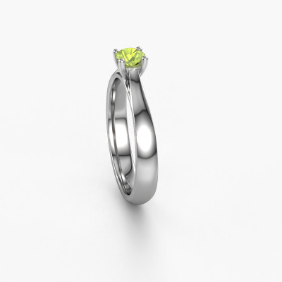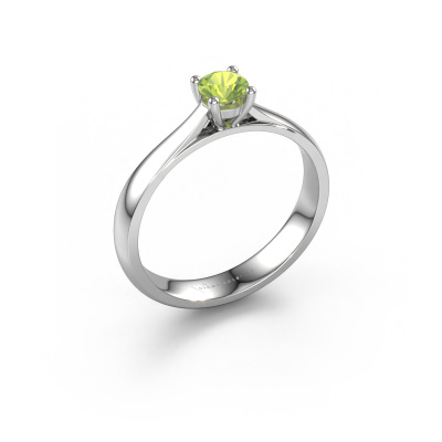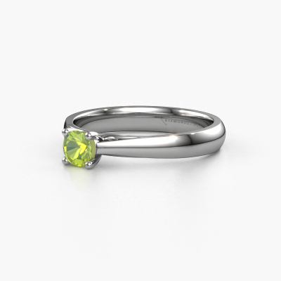 The ring shown above is called the Sam, we call this a solitaire ring because it contains a single gemstone. The engagement ring is made in 14 Carat white gold and has a round peridot of 4.2 mm. This classic white gold solitaire ring with exquisite round peridot is a beautiful engagement ring. The open prong setting allows light to strike the gemstone from various angles. The ring also stands out because of the high positioning of the gemstone. Because diamonds symbolize true love and purity, they make the perfect gift for the love of your life. The symbol of eternal love is the centerpiece of this solitaire ring. Like a diamond, all other types of precious metal have their own attributed symbolic meaning. You can compile the solitaire engagement ring yourself in various precious metal combinations. This one has the combination of 14 Carat white gold with white gold. Each piece of jewelry is made just for you, with attention to detail and design.After receiving your order, our goldsmiths will passionately start the creative process of making your engagement ring in our own studio. Because we don't have a big stockpile, these costs will not be passed on to you. Our pricing is proof of that! We offer top quality jewels at lowest price, guaranteed.Our team adds new designs to our online collection daily. Our designers and goldsmiths work together in creating the best design. We strive to offer a diverse collection of jewels. Perhaps you have a specific jewel design in mind. One you came across somewhere. Please contact us for a free consultation. We will make you an offer, based on a fair price/ quality ratio, that will baffle you.To make it easier for you, we offer a 30 day return policy. Check our terms and conditions.