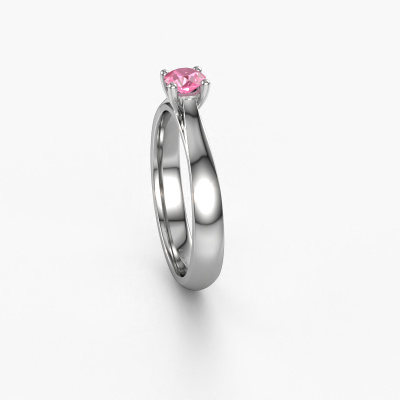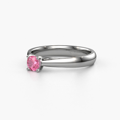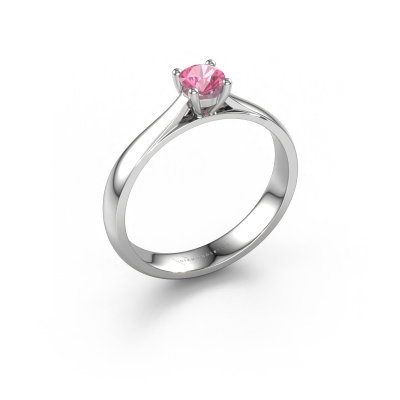 The ring shown above is called the Sam, we call this a solitaire ring because it contains a single gemstone. The engagement ring is made in 14 Carat white gold and has a round pink sapphire of 4.2 mm. This classic white gold solitaire ring with exquisite round pink sapphire is a beautiful engagement ring. The open prong setting allows light to strike the gemstone from various angles. The ring also stands out because of the high positioning of the gemstone. Because diamonds symbolize true love and purity, they make the perfect gift for the love of your life. The symbol of eternal love is the centerpiece of this solitaire ring. Like a diamond, all other types of precious metal have their own attributed symbolic meaning. You can compile the solitaire engagement ring yourself in various precious metal combinations. This one has the combination of 14 Carat white gold with white gold. Each piece of jewelry is made just for you, with attention to detail and design.After receiving your order, our goldsmiths will passionately start the creative process of making your engagement ring in our own studio. Because we don't have a big stockpile, these costs will not be passed on to you. Our pricing is proof of that! We offer top quality jewels at lowest price, guaranteed.Our team adds new designs to our online collection daily. Our designers and goldsmiths work together in creating the best design. We strive to offer a diverse collection of jewels. Perhaps you have a specific jewel design in mind. One you came across somewhere. Please contact us for a free consultation. We will make you an offer, based on a fair price/ quality ratio, that will baffle you.To make it easier for you, we offer a 30 day return policy. Check our terms and conditions.