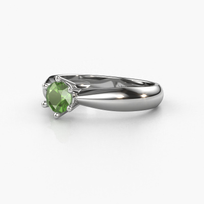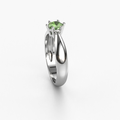 The ring shown above is called the Fay, we call this a solitaire ring because it contains a single gemstone. The engagement ring is made in 14 Carat white gold and has a round tourmaline green of 5 mm. This traditional white gold solitaire ring with exquisite round tourmaline green is a beautiful engagement ring. The open prong setting allows light to strike the gemstone from various angles. The ring also stands out because of the high positioning of the gemstone. Because diamonds symbolize true love and purity, they make the perfect gift for the love of your life. The symbol of eternal love is the centerpiece of this solitaire ring. Like a diamond, all other types of precious metal have their own attributed symbolic meaning. You can compile the solitaire engagement ring yourself in various precious metal combinations. This one has the combination of 14 Carat white gold with white gold. Each piece of jewelry is made just for you by our master goldsmiths in our own studio.By using a combination of the latest modern techniques, combined with ancient crafting, we can make all our engagement rings in our own studio. Each jewel is made to order. This is advantageous because we can offer you a price you won't find anywhere else.Have you found a specific engagement ring somewhere which you would like to give to your loved one? Please feel free to express your wishes to our jewel designers because we would be honoured to turn your design into a traditional engagement ring. You can follow the development of your ring design because we use 3D drawings. This gives you a realistic preview of how your design will look. You can also preorder a dummy. A dummy is a plastic ring, which can be shaped according your ring design. You can try it on and check if its width and size are suitable for you. We will gladly send you a non-binding offer, based on a fair price/ quality ratio. It will amaze you, considering the quality of the ring and gemstones.To make it easier for you, we offer a 30 day return policy. Check our terms and conditions.