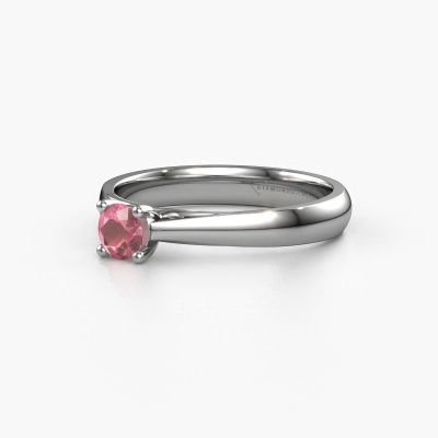 The ring shown above is called the Sam, we call this a solitaire ring because it contains a single gemstone. The engagement ring is made in 14 Carat white gold and has a round tourmaline pink of 4.2 mm. This classic white gold solitaire ring with exquisite round tourmaline pink is a beautiful engagement ring. The open prong setting allows light to strike the gemstone from various angles. The ring also stands out because of the high positioning of the gemstone. Because diamonds symbolize true love and purity, they make the perfect gift for the love of your life. The symbol of eternal love is the centerpiece of this solitaire ring. Like a diamond, all other types of precious metal have their own attributed symbolic meaning. You can compile the solitaire engagement ring yourself in various precious metal combinations. This one has the combination of 14 Carat white gold with white gold. Each piece of jewelry is made just for you, with attention to detail and design.After receiving your order, our goldsmiths will passionately start the creative process of making your engagement ring in our own studio. Because we don't have a big stockpile, these costs will not be passed on to you. Our pricing is proof of that! We offer top quality jewels at lowest price, guaranteed.Our team adds new designs to our online collection daily. Our designers and goldsmiths work together in creating the best design. We strive to offer a diverse collection of jewels. Perhaps you have a specific jewel design in mind. One you came across somewhere. Please contact us for a free consultation. We will make you an offer, based on a fair price/ quality ratio, that will baffle you.To make it easier for you, we offer a 30 day return policy. Check our terms and conditions.