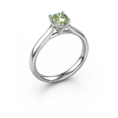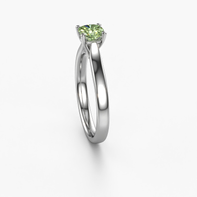 This 14 Carat white gold ring is called Mignon cus 1 and is set with 5 mm green lab grown diamond. This exclusive white gold solitaire engagement ring is a true work of art! The ornaments are crafted with a lot of patience and great passion. In order to create this ring with great precision, this craft requires a keen eye and skilful hand. A challenge which ignites a fire in our expert goldsmith. The exquisite green lab grown diamonds are set in a special way so they stand out even more. This gives the ring an even more glamorous appearance. The edgy engagement ring is actually unique on its own because of the gemstones which we carefully select especially for this ring. On top of that you select the precious metals which will be used to create a unique ring for the most extraordinary woman in your life! This jewel is made by a team of passionate goldsmiths and jewel designers. This will make your crown jewel truly eye-catching.Are you on a budget? Please feel free to contact us, so we can go discuss your options. We offer our engagement rings at guaranteed best price, because we make them to order. You won't find such a price anywhere else!Different styles of new rings are made daily by our team. Perhaps you have found a solitaire engagement ring somewhere. One you would like to give to your loved one. Please feel free to share your thoughts and design with our jewel designers. We would love to turn your design into a luxury engagement ring. You can follow the development of your ring design because we use very detailed 3D drawings. On top of that, you can order a dummy of the design. A dummy is a plastic ring, which can be shaped according your ring design. You can try it on and check if the engagement ring is up to standard. We will gladly send you a non-binding offer, based on a fair price/ quality ratio. The offer will baffle you, considering the quality of the ring and gemstones.To make it easier for you, we offer a 30 day return policy. Check our terms and conditions.