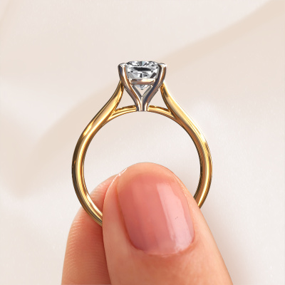 This 14 Carat gold ring is called Mignon cus 1 and is set with 1.50 crt lab grown diamond. This exclusive gold solitaire engagement ring is a true work of art! The ornaments are crafted with a lot of patience and great passion. In order to create this ring with great precision, this craft requires a keen eye and skilful hand. A challenge which ignites a fire in our expert goldsmith. The exquisite lab-grown diamonds are set in a special way so they stand out even more. This gives the ring an even more glamorous appearance. The edgy engagement ring is actually unique on its own because of the gemstones which we carefully select especially for this ring. On top of that you select the precious metals which will be used to create a unique ring for the most extraordinary woman in your life! This jewel is made by a team of passionate goldsmiths and jewel designers. This will make your crown jewel truly eye-catching.Are you on a budget? Please feel free to contact us, so we can go discuss your options. We offer our engagement rings at guaranteed best price, because we make them to order. You won't find such a price anywhere else!Different styles of new rings are made daily by our team. Perhaps you have found a solitaire engagement ring somewhere. One you would like to give to your loved one. Please feel free to share your thoughts and design with our jewel designers. We would love to turn your design into a luxury engagement ring. You can follow the development of your ring design because we use very detailed 3D drawings. On top of that, you can order a dummy of the design. A dummy is a plastic ring, which can be shaped according your ring design. You can try it on and check if the engagement ring is up to standard. We will gladly send you a non-binding offer, based on a fair price/ quality ratio. The offer will baffle you, considering the quality of the ring and gemstones.To make it easier for you, we offer a 30 day return policy. Check our terms and conditions.
