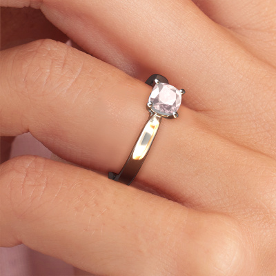 This platinum ring is called Mignon cus 1 and is set with 5 mm morganite champagne. This exclusive platinum solitaire engagement ring is a true work of art! The ornaments are crafted with a lot of patience and great passion. In order to create this ring with great precision, this craft requires a keen eye and skilful hand. A challenge which ignites a fire in our expert goldsmith. The exquisite morganite champagne are set in a special way so they stand out even more. This gives the ring an even more glamorous appearance. The edgy engagement ring is actually unique on its own because of the gemstones which we carefully select especially for this ring. On top of that you select the precious metals which will be used to create a unique ring for the most extraordinary woman in your life! This jewel is made by a team of passionate goldsmiths and jewel designers. This will make your crown jewel truly eye-catching.Are you on a budget? Please feel free to contact us, so we can go discuss your options. We offer our engagement rings at guaranteed best price, because we make them to order. You won't find such a price anywhere else!Different styles of new rings are made daily by our team. Perhaps you have found a solitaire engagement ring somewhere. One you would like to give to your loved one. Please feel free to share your thoughts and design with our jewel designers. We would love to turn your design into a luxury engagement ring. You can follow the development of your ring design because we use very detailed 3D drawings. On top of that, you can order a dummy of the design. A dummy is a plastic ring, which can be shaped according your ring design. You can try it on and check if the engagement ring is up to standard. We will gladly send you a non-binding offer, based on a fair price/ quality ratio. The offer will baffle you, considering the quality of the ring and gemstones.To make it easier for you, we offer a 30 day return policy. Check our terms and conditions.