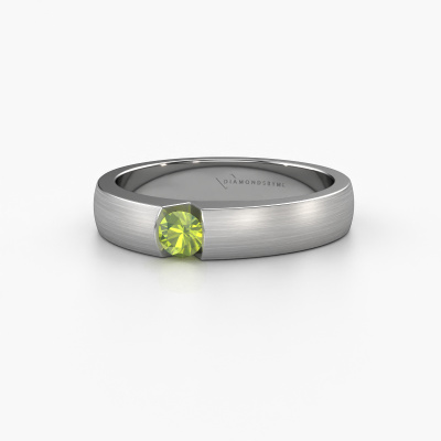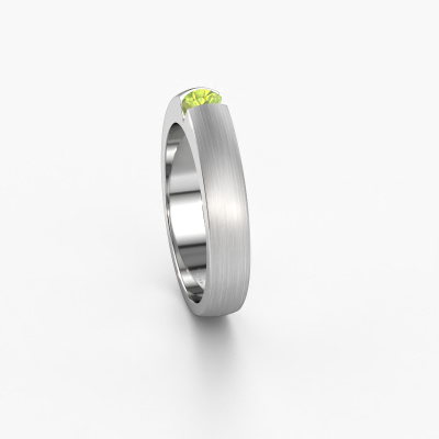This platinum ring is called Theresia and is set with 3.4 mm peridot. The tension setting is what makes this a special engagement ring because it emphasizes the peridot. Our expert goldsmith uses special techniques to set the peridot in this platinum ring. By using these techniques, light reflects freely. This gives the ring its maximum shine and a glamorous appearance. A true work of art! The result is a unique ring, with a trendy appearance, passionately handcrafted to perfection by our expert goldsmith. A one-of-a-kind ring, designed for the love of your life. We recommend a solid gemstone, such as a diamond or sapphire, if you select this ring. The ring must be able to endure a lot of pressure during manufacturing. This piece of jewelry is made just for you by our master goldsmiths in our own studio.By using our modern techniques, we can design and customize the finest quality jewels with the utmost care for you. Our engagement rings are always priced 30 percent lower than other jewellers. We make engagement rings to order so we don't have to maintain a large stock. If you have a certain budget, we are more than happy to advice you accordingly.Different styles of new rings are made daily by our team. Perhaps you have found a solitaire engagement ring somewhere. One you would like to give to your loved one. Please feel free to share your thoughts and design with our jewel designers. We would love to turn your design into a modern engagement ring. You can follow the development of your ring design because we use very detailed 3D drawings. On top of that, you can order a dummy of the design. A dummy is a plastic ring, which can be shaped according your ring design. You can try it on and check if the engagement ring is up to standard. We will gladly send you a non-binding offer, based on a fair price/ quality ratio. The offer will baffle you, considering the quality of the ring and gemstones.To make it easier for you, we offer a 30 day return policy. Check our terms and conditions.