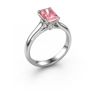 This platinum ring is called Valorie rad 1 and is set with 7.5x5.5 mm pink lab grown diamond. This exclusive platinum solitaire engagement ring is a true work of art! The ornaments are crafted with a lot of patience and great passion. In order to create this ring with great precision, this craft requires a keen eye and skilful hand. A challenge which ignites a fire in our expert goldsmith. The exquisite pink lab grown diamonds are set in a special way so they stand out even more. This gives the ring an even more glamorous appearance. The fashionable engagement ring is actually unique on its own because of the gemstones which we carefully select especially for this ring. On top of that you select the precious metals which will be used to create a unique ring for the most extraordinary woman in your life! This jewel is made just for you by our master goldsmiths in our own studio.By using a combination of the latest modern techniques, combined with ancient crafting, we can make all our engagement rings in our own studio. Each jewel is made to order. This is advantageous because we can offer you a price you won't find anywhere else.Have you found a specific engagement ring somewhere which you would like to give to your loved one? Please feel free to express your wishes to our jewel designers because we would be honoured to turn your design into a exclusive engagement ring. You can follow the development of your ring design because we use 3D drawings. This gives you a realistic preview of how your design will look. You can also preorder a dummy. A dummy is a plastic ring, which can be shaped according your ring design. You can try it on and check if its width and size are suitable for you. We will gladly send you a non-binding offer, based on a fair price/ quality ratio. It will amaze you, considering the quality of the ring and gemstones.To make it easier for you, we offer a 30 day return policy. Check our terms and conditions.