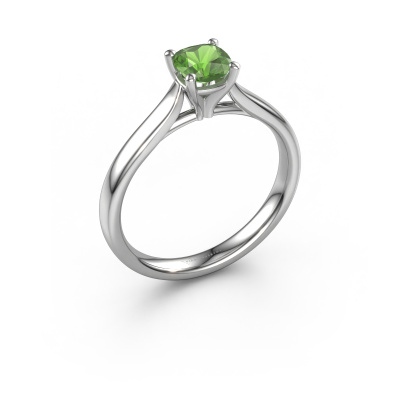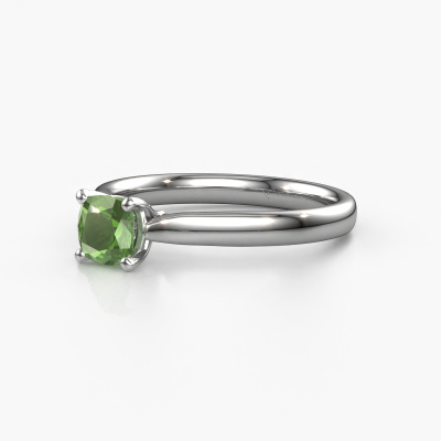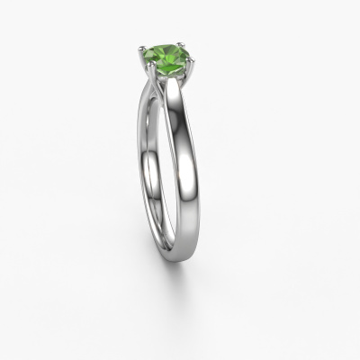This 14 Carat white gold ring is called Mignon cus 1 and is set with 5 mm tourmaline green. This exclusive white gold solitaire engagement ring is a true work of art! The ornaments are crafted with a lot of patience and great passion. In order to create this ring with great precision, this craft requires a keen eye and skilful hand. A challenge which ignites a fire in our expert goldsmith. The exquisite tourmaline green are set in a special way so they stand out even more. This gives the ring an even more glamorous appearance. The edgy engagement ring is actually unique on its own because of the gemstones which we carefully select especially for this ring. On top of that you select the precious metals which will be used to create a unique ring for the most extraordinary woman in your life! This jewel is made by a team of passionate goldsmiths and jewel designers. This will make your crown jewel truly eye-catching.Are you on a budget? Please feel free to contact us, so we can go discuss your options. We offer our engagement rings at guaranteed best price, because we make them to order. You won't find such a price anywhere else!Different styles of new rings are made daily by our team. Perhaps you have found a solitaire engagement ring somewhere. One you would like to give to your loved one. Please feel free to share your thoughts and design with our jewel designers. We would love to turn your design into a luxury engagement ring. You can follow the development of your ring design because we use very detailed 3D drawings. On top of that, you can order a dummy of the design. A dummy is a plastic ring, which can be shaped according your ring design. You can try it on and check if the engagement ring is up to standard. We will gladly send you a non-binding offer, based on a fair price/ quality ratio. The offer will baffle you, considering the quality of the ring and gemstones.To make it easier for you, we offer a 30 day return policy. Check our terms and conditions.