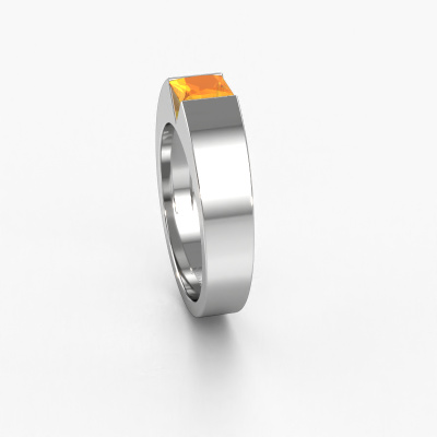 This 14 Carat white gold ring is called Arlena 1 and is set with 4 mm citrin. The tension setting is what makes this a special engagement ring because it emphasizes the citrin. Our expert goldsmith uses special techniques to set the citrin in this white gold ring. By using these techniques, light reflects freely. This gives the ring its maximum shine and a glamorous appearance. A true work of art! The result is a unique ring, with a trendy appearance, passionately handcrafted to perfection by our expert goldsmith. A one-of-a-kind ring, designed for the love of your life. We recommend a solid gemstone, such as a diamond or sapphire, if you select this ring. The ring must be able to endure a lot of pressure during manufacturing. This piece of jewelry is made just for you, with attention to detail and design.By using a combination of the latest modern techniques, combined with ancient crafting, we can make all our engagement rings in our own studio. Each jewel is made to order. This is advantageous because we can offer you a price you won't find anywhere else.Do you have a specific ring in mind? One you came across somewhere. Please feel free to tell us your wishes and we will turn your design into a unique engagement ring. You can follow the development of your ring design because we use 3D drawings. This gives you a realistic preview of your design. We will gladly send you a non-binding offer, based on a fair price/ quality ratio. It will amaze you.To make it easier for you, we offer a 30 day return policy. Check our terms and conditions.