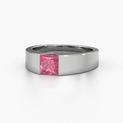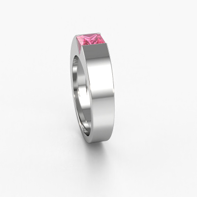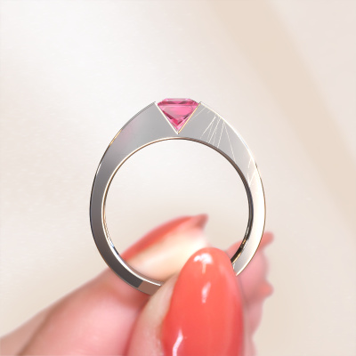 This platinum ring is called Arlena 1 and is set with 4 mm pink sapphire. The tension setting is what makes this a special engagement ring because it emphasizes the pink sapphire. Our expert goldsmith uses special techniques to set the pink sapphire in this platinum ring. By using these techniques, light reflects freely. This gives the ring its maximum shine and a glamorous appearance. A true work of art! The result is a unique ring, with a trendy appearance, passionately handcrafted to perfection by our expert goldsmith. A one-of-a-kind ring, designed for the love of your life. We recommend a solid gemstone, such as a diamond or sapphire, if you select this ring. The ring must be able to endure a lot of pressure during manufacturing. This piece of jewelry is made just for you, with attention to detail and design.By using a combination of the latest modern techniques, combined with ancient crafting, we can make all our engagement rings in our own studio. Each jewel is made to order. This is advantageous because we can offer you a price you won't find anywhere else.Do you have a specific ring in mind? One you came across somewhere. Please feel free to tell us your wishes and we will turn your design into a unique engagement ring. You can follow the development of your ring design because we use 3D drawings. This gives you a realistic preview of your design. We will gladly send you a non-binding offer, based on a fair price/ quality ratio. It will amaze you.To make it easier for you, we offer a 30 day return policy. Check our terms and conditions.