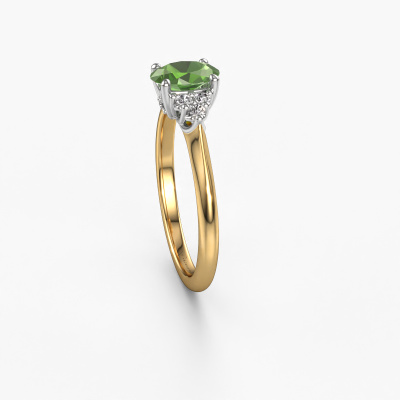 This 14 Carat gold ring is called Felipa OVL and is set with tourmaline green. How would you describe the style of the love of your life? Does she have a unique sense of style? This stunning graceful gold engagement ring can be custom-made to your own or her liking. Our tourmaline green gemstones have been carefully selected because we believe your traditional engagement ring must be adorned with nothing but the most beautiful gemstone. Don't you agree? This jewel is made just for you by our master goldsmiths in our own studio.By using our modern techniques, we can design and customize the finest quality jewels with the utmost care for you. Our engagement rings are always priced 30 percent lower than other jewellers. We make engagement rings to order so we don't have to maintain a large stock. If you have a certain budget, we are more than happy to advice you accordingly.Have you found a specific engagement ring somewhere which you would like to give to your loved one? Please feel free to express your wishes to our jewel designers because we would be honoured to turn your design into a traditional engagement ring. You can follow the development of your ring design because we use 3D drawings. This gives you a realistic preview of how your design will look. You can also preorder a dummy. A dummy is a plastic ring, which can be shaped according your ring design. You can try it on and check if its width and size are suitable for you. We will gladly send you a non-binding offer, based on a fair price/ quality ratio. It will amaze you, considering the quality of the ring and gemstones.To make it easier for you, we offer a 30 day return policy. Check our terms and conditions.