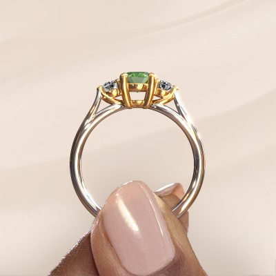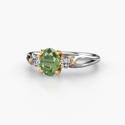 This 14 Carat white gold ring is called Amie OVL and is set with 7x5 mm tourmaline green. What is it that makes your relationship unique? What is it about her that makes you want to bend down on one knee? The unique bond between the two of you is emphasized by an equally unique ring. A one of a kind stylish 3-stone engagement ring made especially for her. That is why this fantasy ring fits her like a glove. Each specific detail of this stylish white gold tourmaline green set engagement ring is hand-picked, crafted and polished by our expert goldsmith. The result is an exquisite ring, unique and perfectly crafted to perfection. That is what our expert Goldsmiths strive for. This jewel is made to shine bright around your finger. Each jewel is hand made with love by our goldsmiths.By using our modern techniques, we can design and customize the finest quality jewels with the utmost care for you. Our engagement rings are always priced 30 percent lower than other jewellers. We make engagement rings to order so we don't have to maintain a large stock. If you have a certain budget, we are more than happy to advice you accordingly.Do you have a specific ring in mind? One you came across somewhere. Please feel free to tell us your wishes and we will turn your design into a unique engagement ring. You can follow the development of your ring design because we use 3D drawings. This gives you a realistic preview of your design. We will gladly send you a non-binding offer, based on a fair price/ quality ratio. It will amaze you.To make it easier for you, we offer a 30 day return policy. Check our terms and conditions.