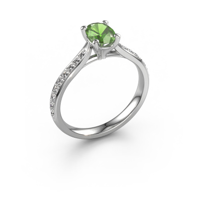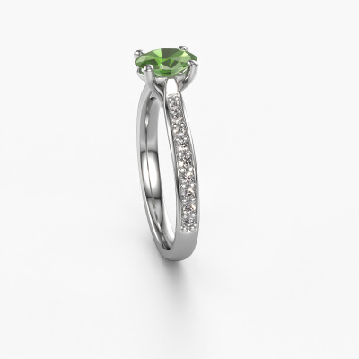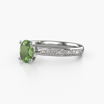 The ring shown above is called the Mignon ovl 2, we call this a solitaire ring because it contains a single gemstone. The engagement ring is made in platinum and has a oval tourmaline green of 7x5 mm. The cool thing about our configurator is that you can compile your own piece of jewellery, into a completely personalized one. This solitaire ring is crafted in the precious metals platinum with platinum, but of course you are free to pick your own colours. Each piece of jewellery is made with passion and love by one of our master goldsmiths.The solitaire ring is a special type of engagement ring. Its open prong setting allows light to strike the gemstone from various angles. This chic engagement ring is a stunning eye-catcher because of the high positioning of the gemstone. In order for you to commemorate your proposal with a unique ring, we carefully adorn this solitaire ring by hand. The love of your life deserves nothing but the best. After receiving your order, our goldsmiths will passionately start the creative process of making your engagement ring in our own studio. Because we don't have a big stockpile, these costs will not be passed on to you. Our pricing is proof of that! We offer top quality jewels at lowest price, guaranteed.Our team adds new designs to our online collection daily. Our designers and goldsmiths work together in creating the best design. We strive to offer a diverse collection of jewels. Perhaps you have a specific jewel design in mind. One you came across somewhere. Please contact us for a free consultation. We will make you an offer, based on a fair price/ quality ratio, that will baffle you.To make it easier for you, we offer a 30 day return policy. Check our terms and conditions.