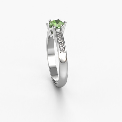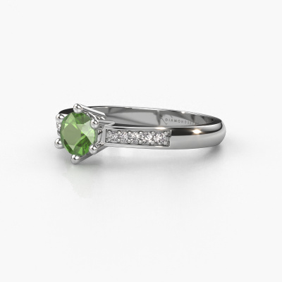 The ring shown above is called the Luna 2. We call this type of ring a pavé solitaire ring because it has one centre gemstone and a band that is also pave set with gemstones. This engagement ring is made in platinum set with a 5 mm round tourmaline green, and pave set diamonds at the sides. Each piece of jewellery is unique in every way! Simply customize to your liking,This classic platinum pavé solitaire engagement ring has an exquisite round tourmaline green centre stone. To further accentuate the centre stone, the band is set full with more diamonds. Its open prong setting allows light to strike the tourmaline green from various angles and this adds sparkle to your tourmaline green ring. The photo shown above depicts the goldsmith's carefully handcrafted details of the ring. The high positioning of the centre stone is truly eye-catching. The perfect engagement ring for the crown jewel of your life!Because we design and deliver our own rings, we can offer you a engagement ring at a price you won't find anywhere else. A ring is made to order, which helps prevent excess supplies, so we can make you a great price offer. We understand it feels risky, buying your engagement ring online, but we will gladly assist in the designing process, taking your budget into consideration.Our team adds new designs to our online collection daily. Our designers and goldsmiths work together in creating the best design. We strive to offer a diverse collection of jewels. Perhaps you have a specific jewel design in mind. One you came across somewhere. Please contact us for a free consultation. We will make you an offer, based on a fair price/ quality ratio, that will baffle you.To make it easier for you, we offer a 30 day return policy. Check our terms and conditions.