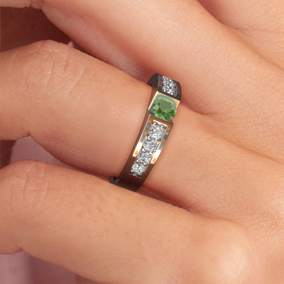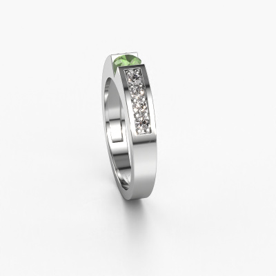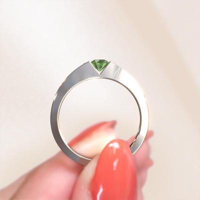 The ring shown above is called the Lizzy 2. We call this type of ring a pavé solitaire ring because it has one centre gemstone and a band that is also pave set with gemstones. This engagement ring is made in platinum set with a 4.2 mm round tourmaline green, and pave set diamonds at the sides. Each piece of jewellery is made to shine bright around your finger. Each jewel is hand made with love by our goldsmiths.This modern platinum pavé solitaire engagement ring has an exquisite round tourmaline green centre stone. To further accentuate the centre stone, the band is set full with more diamonds. Its open prong setting allows light to strike the tourmaline green from various angles and this adds sparkle to your tourmaline green ring. The photo shown above depicts the goldsmith's carefully handcrafted details of the ring. The high positioning of the centre stone is truly eye-catching. The perfect engagement ring for the crown jewel of your life!By using a combination of the latest modern techniques, combined with ancient crafting, we can make all our engagement rings in our own studio. Each jewel is made to order. This is advantageous because we can offer you a price you won't find anywhere else.Our team adds new designs to our online collection daily. Our designers and goldsmiths work together in creating the best design. We strive to offer a diverse collection of jewels. Perhaps you have a specific jewel design in mind. One you came across somewhere. Please contact us for a free consultation. We will make you an offer, based on a fair price/ quality ratio, that will baffle you.To make it easier for you, we offer a 30 day return policy. Check our terms and conditions.
