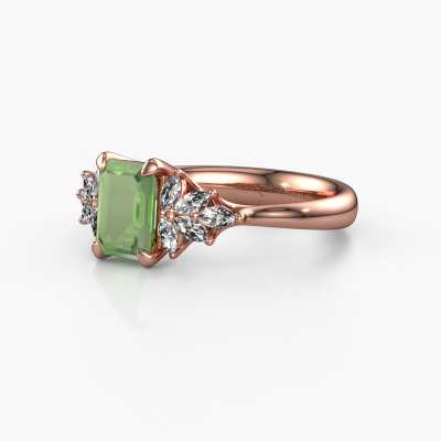 This 14 Carat rose gold ring is called Fiona EME and is set with 7x5 mm tourmaline green. What is it that makes your relationship unique? What is it about her that makes you want to bend down on one knee? The unique bond between the two of you is emphasized by an equally unique ring. A one of a kind special pavé solitaire engagement ring made especially for her. That is why this vintage ring fits her like a glove. Each specific detail of this special rose gold tourmaline green set engagement ring is hand-picked, crafted and polished by our expert goldsmith. The result is an exquisite ring, unique and perfectly crafted to perfection. That is what our expert Goldsmiths strive for. This jewel is created to add sparkle to your finger, each jewel is lovingly made by hand by our goldsmiths.Because we design and deliver our own rings, we can offer you a engagement ring at a price you won't find anywhere else. A ring is made to order, which helps prevent excess supplies, so we can make you a great price offer. We understand it feels risky, buying your engagement ring online, but we will gladly assist in the designing process, taking your budget into consideration.Our team adds new designs to our online collection daily. Our designers and goldsmiths work together in creating the best design. We strive to offer a diverse collection of jewels. Perhaps you have a specific jewel design in mind. One you came across somewhere. Please contact us for a free consultation. We will make you an offer, based on a fair price/ quality ratio, that will baffle you.To make it easier for you, we offer a 30 day return policy. Check our terms and conditions.
