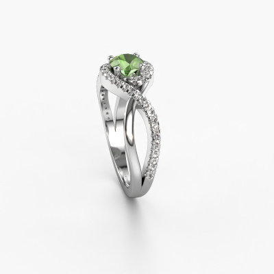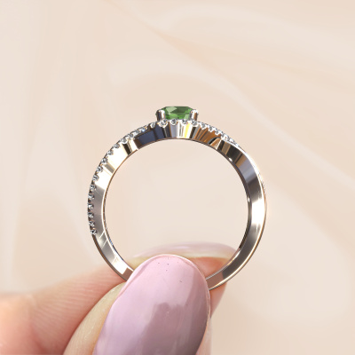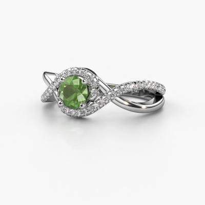 The ring shown above is called the Melody. We call this type of ring a pavé solitaire ring because it has one centre gemstone and a band that is also pave set with gemstones. This engagement ring is made in 14 Carat white gold set with a 5 mm round tourmaline green, and pave set diamonds at the sides. Each piece of jewellery is unique in every way! Simply customize to your likingThis classic white gold pavé solitaire engagement ring has an exquisite round tourmaline green centre stone. To further accentuate the centre stone, the band is set full with more diamonds. Its open prong setting allows light to strike the tourmaline green from various angles and this adds sparkle to your tourmaline green ring. The photo shown above depicts the goldsmith's carefully handcrafted details of the ring. The high positioning of the centre stone is truly eye-catching. The perfect engagement ring for the crown jewel of your life!Because we design and deliver our own rings, we can offer you a engagement ring at a price you won't find anywhere else. A ring is made to order, which helps prevent excess supplies, so we can make you a great price offer. We understand it feels risky, buying your engagement ring online, but we will gladly assist in the designing process, taking your budget into consideration.Do you have a specific ring in mind? One you came across somewhere. Please feel free to tell us your wishes and we will turn your design into a unique engagement ring. You can follow the development of your ring design because we use 3D drawings. This gives you a realistic preview of your design. We will gladly send you a non-binding offer, based on a fair price/ quality ratio. It will amaze you.To make it easier for you, we offer a 30 day return policy. Check our terms and conditions.