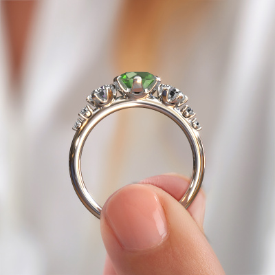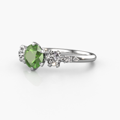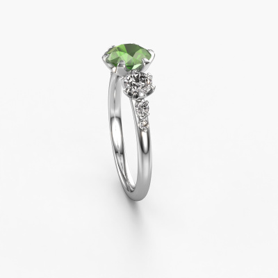 This 14 Carat white gold ring is called Aniek RND and is set with tourmaline green. How would you describe the style of the love of your life? Does she have a unique sense of style? This stunning graceful white gold engagement ring can be custom-made to your own or her liking. Our tourmaline green gemstones have been carefully selected because we believe your fantasy engagement ring must be adorned with nothing but the most beautiful gemstone. Don't you agree? This jewel is made just for you by our master goldsmiths in our own studio.Are you on a budget? Please feel free to contact us, so we can go discuss your options. We offer our engagement rings at guaranteed best price, because we make them to order. You won't find such a price anywhere else!Have you found a specific engagement ring somewhere which you would like to give to your loved one? Please feel free to express your wishes to our jewel designers because we would be honoured to turn your design into a fantasy engagement ring. You can follow the development of your ring design because we use 3D drawings. This gives you a realistic preview of how your design will look. You can also preorder a dummy. A dummy is a plastic ring, which can be shaped according your ring design. You can try it on and check if its width and size are suitable for you. We will gladly send you a non-binding offer, based on a fair price/ quality ratio. It will amaze you, considering the quality of the ring and gemstones.To make it easier for you, we offer a 30 day return policy. Check our terms and conditions.