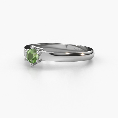 The ring shown above is called the Luna 1, we call this a solitaire ring because it contains a single gemstone. The engagement ring is made in platinum and has a round tourmaline green of 3.7 mm. The cool thing about our configurator is that you can compile your own piece of jewellery, into a completely personalized one. This solitaire ring is crafted in the precious metals platinum with platinum, but of course you are free to pick your own colours. Each piece of jewellery is made with passion and love by one of our master goldsmiths.The solitaire ring is a special type of engagement ring. Its open prong setting allows light to strike the gemstone from various angles. This classic engagement ring is a stunning eye-catcher because of the high positioning of the gemstone. In order for you to commemorate your proposal with a unique ring, we carefully adorn this solitaire ring by hand. The love of your life deserves nothing but the best. After receiving your order, our goldsmiths will start the creative process of making your Luna 1 engagement ring. We don't keep stock. This is advantageous because these costs will not be passed on to you. Therefore, we can offer jewellery at exceptionally low prices.Our designers and goldsmiths work together each day, creating new jewels. Perhaps you have found a nice classic engagement ring somewhere, which can be used to customize your unique ring. Please feel free to contact us. We will make you an offer, based on a fair price/ quality ratio, which will amaze you.To make it easier for you, we offer a 30 day return policy. Check our terms and conditions.