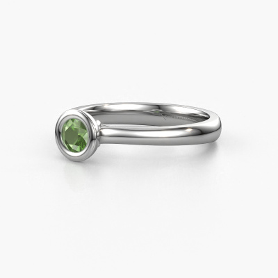 The ring shown above is called the Kaylee, we call this a solitaire ring because it contains a single gemstone. The Engagement ring is made in platinum and has a round tourmaline green of 4 mm. The cool thing about our configurator is that you can compile your own piece of jewellery, into a completely personalized one. This solitaire ring is crafted in the precious metals platinum with platinum, but of course you are free to pick your own colours. Each piece of jewellery is made by a team of passionate goldsmiths and jewel designers. This will make your crown jewel truly eye-catching.The solitaire ring is a special type of Engagement ring. Its open prong setting allows light to strike the gemstone from various angles. This fashionable Engagement ring is a stunning eye-catcher because of the high positioning of the gemstone. In order for you to commemorate your proposal with a unique ring, we carefully adorn this solitaire ring by hand. The love of your life deserves nothing but the best. Because we design and deliver our own rings, we can offer you a Engagement ring at a price you won't find anywhere else. A ring is made to order, which helps prevent excess supplies, so we can make you a great price offer. We understand it feels risky, buying your Engagement ring online, but we will gladly assist in the designing process, taking your budget into consideration.Different styles of new rings are made daily by our team. Perhaps you have found a solitaire Engagement ring somewhere. One you would like to give to your loved one. Please feel free to share your thoughts and design with our jewel designers. We would love to turn your design into a fashionable Engagement ring. You can follow the development of your ring design because we use very detailed 3D drawings. On top of that, you can order a dummy of the design. A dummy is a plastic ring, which can be shaped according your ring design. You can try it on and check if the Engagement ring is up to standard. We will gladly send you a non-binding offer, based on a fair price/ quality ratio. The offer will baffle you, considering the quality of the ring and gemstones.To make it easier for you, we offer a 30 day return policy. Check our terms and conditions.