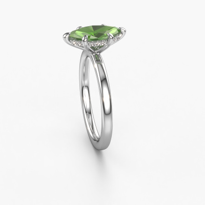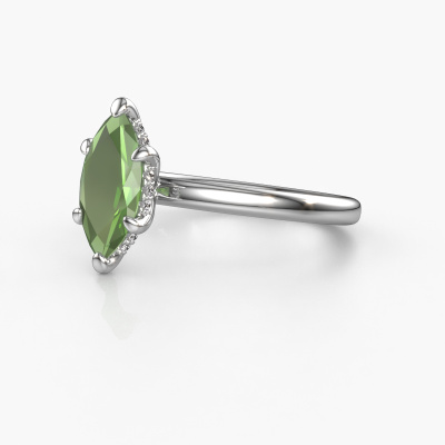 This platinum ring is called Simone MRQ 2 and is set with 11x5.5 mm tourmaline green. What is it that makes your relationship unique? What is it about her that makes you want to bend down on one knee? The unique bond between the two of you is emphasized by an equally unique ring. A one of a kind round solitaire engagement ring made especially for her. That is why this fantasy ring fits her like a glove. Each specific detail of this round platinum tourmaline green set engagement ring is hand-picked, crafted and polished by our expert goldsmith. The result is an exquisite ring, unique and perfectly crafted to perfection. That is what our expert Goldsmiths strive for. This jewel is made just for you by our master goldsmiths in our own studio.Because we design and deliver our own rings, we can offer you a engagement ring at a price you won't find anywhere else. A ring is made to order, which helps prevent excess supplies, so we can make you a great price offer. We understand it feels risky, buying your engagement ring online, but we will gladly assist in the designing process, taking your budget into consideration.Our designers and goldsmiths work together each day, creating new jewels. Perhaps you have found a nice fantasy engagement ring somewhere, which can be used to customize your unique ring. Please feel free to contact us. We will make you an offer, based on a fair price/ quality ratio, which will amaze you.To make it easier for you, we offer a 30 day return policy. Check our terms and conditions.