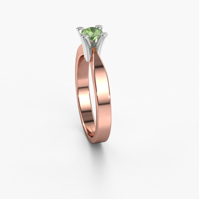 In your eyes, no one else compares to her. She is one in a million, unlike anyone else and pure? These qualities are emphasized perfectly by our traditional rose gold solitaire tourmaline green ring. This tourmaline green is carefully selected by our keen artisan goldsmiths. It equals the unique qualities of the love of your life. There is no better way to memorialize your proposal than this symbol of true love. The ring shown above is called the Ichelle 1, we call this a solitaire ring because it contains a single gemstone. The engagement ring is made in 14 Carat rose gold and has a round tourmaline green of 4.2 mm. Each piece of jewellery is made with passion and love by one of our master goldsmiths.After receiving your order, our goldsmiths will start the creative process of making your Ichelle 1 engagement ring. We don't keep stock. This is advantageous because these costs will not be passed on to you. Therefore, we can offer jewellery at exceptionally low prices.Have you found a specific engagement ring somewhere which you would like to give to your loved one? Please feel free to express your wishes to our jewel designers because we would be honoured to turn your design into a traditional engagement ring. You can follow the development of your ring design because we use 3D drawings. This gives you a realistic preview of how your design will look. You can also preorder a dummy. A dummy is a plastic ring, which can be shaped according your ring design. You can try it on and check if its width and size are suitable for you. We will gladly send you a non-binding offer, based on a fair price/ quality ratio. It will amaze you, considering the quality of the ring and gemstones.To make it easier for you, we offer a 30 day return policy. Check our terms and conditions.