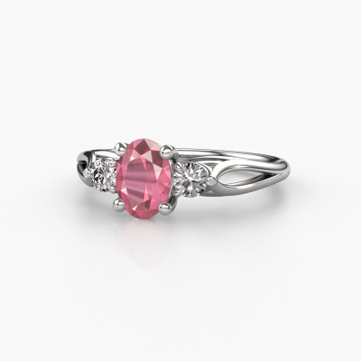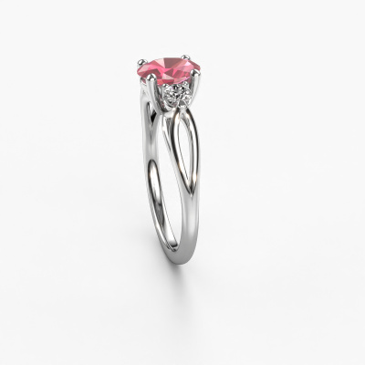 This platinum ring is called Amie OVL and is set with 7x5 mm tourmaline pink. What is it that makes your relationship unique? What is it about her that makes you want to bend down on one knee? The unique bond between the two of you is emphasized by an equally unique ring. A one of a kind stylish 3-stone engagement ring made especially for her. That is why this fantasy ring fits her like a glove. Each specific detail of this stylish platinum tourmaline pink set engagement ring is hand-picked, crafted and polished by our expert goldsmith. The result is an exquisite ring, unique and perfectly crafted to perfection. That is what our expert Goldsmiths strive for. This jewel is made to shine bright around your finger. Each jewel is hand made with love by our goldsmiths.By using our modern techniques, we can design and customize the finest quality jewels with the utmost care for you. Our engagement rings are always priced 30 percent lower than other jewellers. We make engagement rings to order so we don't have to maintain a large stock. If you have a certain budget, we are more than happy to advice you accordingly.Do you have a specific ring in mind? One you came across somewhere. Please feel free to tell us your wishes and we will turn your design into a unique engagement ring. You can follow the development of your ring design because we use 3D drawings. This gives you a realistic preview of your design. We will gladly send you a non-binding offer, based on a fair price/ quality ratio. It will amaze you.To make it easier for you, we offer a 30 day return policy. Check our terms and conditions.