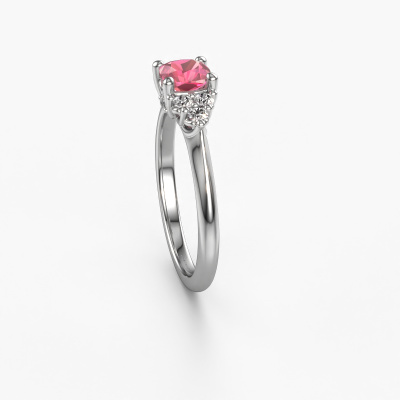 This platinum ring is called Felipa CUS and is set with tourmaline pink. How would you describe the style of the love of your life? Does she have a unique sense of style? This stunning graceful platinum engagement ring can be custom-made to your own or her liking. Our tourmaline pink gemstones have been carefully selected because we believe your vintage engagement ring must be adorned with nothing but the most beautiful gemstone. Don't you agree? This jewel is made just for you by our master goldsmiths in our own studio.By using our modern techniques, we can design and customize the finest quality jewels with the utmost care for you. Our engagement rings are always priced 30 percent lower than other jewellers. We make engagement rings to order so we don't have to maintain a large stock. If you have a certain budget, we are more than happy to advice you accordingly.Have you found a specific engagement ring somewhere which you would like to give to your loved one? Please feel free to express your wishes to our jewel designers because we would be honoured to turn your design into a vintage engagement ring. You can follow the development of your ring design because we use 3D drawings. This gives you a realistic preview of how your design will look. You can also preorder a dummy. A dummy is a plastic ring, which can be shaped according your ring design. You can try it on and check if its width and size are suitable for you. We will gladly send you a non-binding offer, based on a fair price/ quality ratio. It will amaze you, considering the quality of the ring and gemstones.To make it easier for you, we offer a 30 day return policy. Check our terms and conditions.