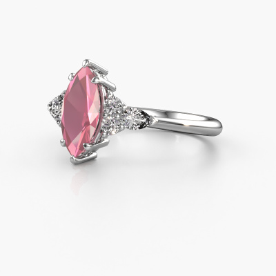 This platinum ring is called Melani MRQ and is set with 11x5.5 mm tourmaline pink. What is it that makes your relationship unique? What is it about her that makes you want to bend down on one knee? The unique bond between the two of you is emphasized by an equally unique ring. A one of a kind graceful cluster engagement ring made especially for her. That is why this trendy ring fits her like a glove. Each specific detail of this graceful platinum tourmaline pink set engagement ring is hand-picked, crafted and polished by our expert goldsmith. The result is an exquisite ring, unique and perfectly crafted to perfection. That is what our expert Goldsmiths strive for. This jewel is made just for you, with attention to detail and design.After receiving your order, our goldsmiths will passionately start the creative process of making your engagement ring in our own studio. Because we don't have a big stockpile, these costs will not be passed on to you. Our pricing is proof of that! We offer top quality jewels at lowest price, guaranteed.Do you have a specific ring in mind? One you came across somewhere. Please feel free to tell us your wishes and we will turn your design into a unique engagement ring. You can follow the development of your ring design because we use 3D drawings. This gives you a realistic preview of your design. We will gladly send you a non-binding offer, based on a fair price/ quality ratio. It will amaze you.To make it easier for you, we offer a 30 day return policy. Check our terms and conditions.