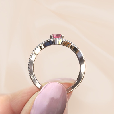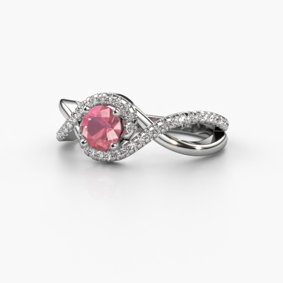 The ring shown above is called the Melody. We call this type of ring a pavé solitaire ring because it has one centre gemstone and a band that is also pave set with gemstones. This engagement ring is made in platinum set with a 5 mm round tourmaline pink, and pave set diamonds at the sides. Each piece of jewellery is unique in every way! Simply customize to your likingThis classic platinum pavé solitaire engagement ring has an exquisite round tourmaline pink centre stone. To further accentuate the centre stone, the band is set full with more diamonds. Its open prong setting allows light to strike the tourmaline pink from various angles and this adds sparkle to your tourmaline pink ring. The photo shown above depicts the goldsmith's carefully handcrafted details of the ring. The high positioning of the centre stone is truly eye-catching. The perfect engagement ring for the crown jewel of your life!Because we design and deliver our own rings, we can offer you a engagement ring at a price you won't find anywhere else. A ring is made to order, which helps prevent excess supplies, so we can make you a great price offer. We understand it feels risky, buying your engagement ring online, but we will gladly assist in the designing process, taking your budget into consideration.Do you have a specific ring in mind? One you came across somewhere. Please feel free to tell us your wishes and we will turn your design into a unique engagement ring. You can follow the development of your ring design because we use 3D drawings. This gives you a realistic preview of your design. We will gladly send you a non-binding offer, based on a fair price/ quality ratio. It will amaze you.To make it easier for you, we offer a 30 day return policy. Check our terms and conditions.