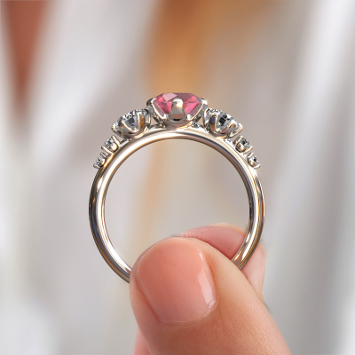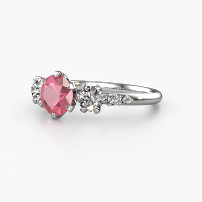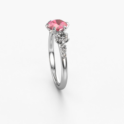 This platinum ring is called Aniek RND and is set with tourmaline pink. How would you describe the style of the love of your life? Does she have a unique sense of style? This stunning graceful platinum engagement ring can be custom-made to your own or her liking. Our tourmaline pink gemstones have been carefully selected because we believe your fantasy engagement ring must be adorned with nothing but the most beautiful gemstone. Don't you agree? This jewel is made just for you by our master goldsmiths in our own studio.Are you on a budget? Please feel free to contact us, so we can go discuss your options. We offer our engagement rings at guaranteed best price, because we make them to order. You won't find such a price anywhere else!Have you found a specific engagement ring somewhere which you would like to give to your loved one? Please feel free to express your wishes to our jewel designers because we would be honoured to turn your design into a fantasy engagement ring. You can follow the development of your ring design because we use 3D drawings. This gives you a realistic preview of how your design will look. You can also preorder a dummy. A dummy is a plastic ring, which can be shaped according your ring design. You can try it on and check if its width and size are suitable for you. We will gladly send you a non-binding offer, based on a fair price/ quality ratio. It will amaze you, considering the quality of the ring and gemstones.To make it easier for you, we offer a 30 day return policy. Check our terms and conditions.