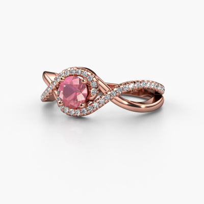 The ring shown above is called the Melody. We call this type of ring a pavé solitaire ring because it has one centre gemstone and a band that is also pave set with gemstones. This engagement ring is made in 14 Carat rose gold set with a 5 mm round tourmaline pink, and pave set diamonds at the sides. Each piece of jewellery is unique in every way! Simply customize to your likingThis classic rose gold pavé solitaire engagement ring has an exquisite round tourmaline pink centre stone. To further accentuate the centre stone, the band is set full with more diamonds. Its open prong setting allows light to strike the tourmaline pink from various angles and this adds sparkle to your tourmaline pink ring. The photo shown above depicts the goldsmith's carefully handcrafted details of the ring. The high positioning of the centre stone is truly eye-catching. The perfect engagement ring for the crown jewel of your life!Because we design and deliver our own rings, we can offer you a engagement ring at a price you won't find anywhere else. A ring is made to order, which helps prevent excess supplies, so we can make you a great price offer. We understand it feels risky, buying your engagement ring online, but we will gladly assist in the designing process, taking your budget into consideration.Do you have a specific ring in mind? One you came across somewhere. Please feel free to tell us your wishes and we will turn your design into a unique engagement ring. You can follow the development of your ring design because we use 3D drawings. This gives you a realistic preview of your design. We will gladly send you a non-binding offer, based on a fair price/ quality ratio. It will amaze you.To make it easier for you, we offer a 30 day return policy. Check our terms and conditions.