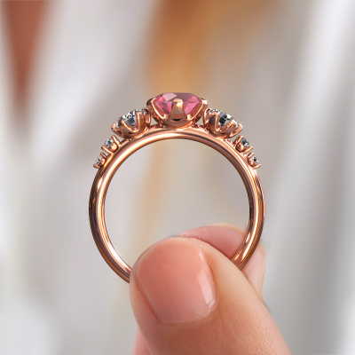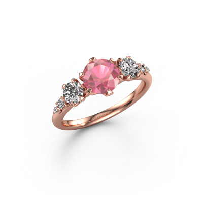 This 14 Carat rose gold ring is called Aniek RND and is set with tourmaline pink. How would you describe the style of the love of your life? Does she have a unique sense of style? This stunning graceful rose gold engagement ring can be custom-made to your own or her liking. Our tourmaline pink gemstones have been carefully selected because we believe your fantasy engagement ring must be adorned with nothing but the most beautiful gemstone. Don't you agree? This jewel is made just for you by our master goldsmiths in our own studio.Are you on a budget? Please feel free to contact us, so we can go discuss your options. We offer our engagement rings at guaranteed best price, because we make them to order. You won't find such a price anywhere else!Have you found a specific engagement ring somewhere which you would like to give to your loved one? Please feel free to express your wishes to our jewel designers because we would be honoured to turn your design into a fantasy engagement ring. You can follow the development of your ring design because we use 3D drawings. This gives you a realistic preview of how your design will look. You can also preorder a dummy. A dummy is a plastic ring, which can be shaped according your ring design. You can try it on and check if its width and size are suitable for you. We will gladly send you a non-binding offer, based on a fair price/ quality ratio. It will amaze you, considering the quality of the ring and gemstones.To make it easier for you, we offer a 30 day return policy. Check our terms and conditions.