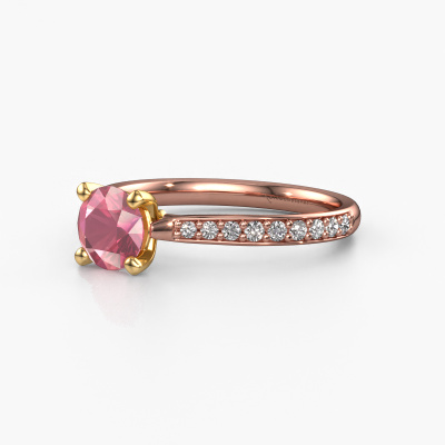 The ring shown above is called the Mignon rnd 2. We call this type of ring a pavé solitaire ring because it has one centre gemstone and a band that is also pave set with gemstones. The 14 Carat rose gold engagement ring is set with a round 6 mm tourmaline pink centre stone and the band is pave set with lab grown diamond gemstones. Each jewel is made by a team of passionate goldsmiths and jewel designers. This will make your crown jewel truly eye-catching.This luxury rose gold pavé solitaire engagement ring has an exquisite round tourmaline pink centre stone. To further accentuate the centre stone, the band is fully set with more lab-grown diamonds. Its open prong setting allows light to strike the tourmaline pink from various angles and this adds sparkle to your tourmaline pink ring. The photo shown above depicts the goldsmith's carefully handcrafted details of the ring. The high positioning of the centre stone is truly eye-catching. The perfect engagement ring for the crown jewel of your life! By using our modern techniques, we can design and customize the finest quality jewels with the utmost care for you. Our engagement rings are always priced 30 percent lower than other jewellers. We make engagement rings to order so we don't have to maintain a large stock. If you have a certain budget, we are more than happy to advice you accordingly.Different styles of new rings are made daily by our team. Perhaps you have found a pavé solitaire engagement ring somewhere. One you would like to give to your loved one. Please feel free to share your thoughts and design with our jewel designers. We would love to turn your design into a luxury engagement ring. You can follow the development of your ring design because we use very detailed 3D drawings. On top of that, you can order a dummy of the design. A dummy is a plastic ring, which can be shaped according your ring design. You can try it on and check if the engagement ring is up to standard. We will gladly send you a non-binding offer, based on a fair price/ quality ratio. The offer will baffle you, considering the quality of the ring and gemstones.To make it easier for you, we offer a 30 day return policy. Check our terms and conditions.