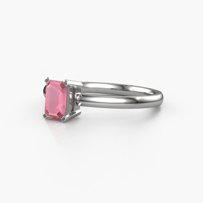 The ring shown above is called the Denita 1 EME, we call this a solitaire ring because it contains a single gemstone. The engagement ring is made in platinum and has a emerald cut tourmaline pink of 6x4 mm. The cool thing about our configurator is that you can compile your own piece of jewellery, into a completely personalized one. This solitaire ring is crafted in the precious metals platinum with platinum, but of course you are free to pick your own colours. Each piece of jewellery is made by a team of passionate goldsmiths and jewel designers. This will make your crown jewel truly eye-catching.The solitaire ring is a special type of engagement ring. Its open prong setting allows light to strike the gemstone from various angles. This contemporary engagement ring is a stunning eye-catcher because of the high positioning of the gemstone. In order for you to commemorate your proposal with a unique ring, we carefully adorn this solitaire ring by hand. The love of your life deserves nothing but the best. By using a combination of the latest modern techniques, combined with ancient crafting, we can make all our engagement rings in our own studio. Each jewel is made to order. This is advantageous because we can offer you a price you won't find anywhere else.Our team adds new designs to our online collection daily. Our designers and goldsmiths work together in creating the best design. We strive to offer a diverse collection of jewels. Perhaps you have a specific jewel design in mind. One you came across somewhere. Please contact us for a free consultation. We will make you an offer, based on a fair price/ quality ratio, that will baffle you.To make it easier for you, we offer a 30 day return policy. Check our terms and conditions.
