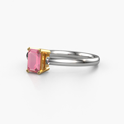 The ring shown above is called the Denita 1 EME, we call this a solitaire ring because it contains a single gemstone. The engagement ring is made in 14 Carat white gold and has a emerald cut tourmaline pink of 6x4 mm. The cool thing about our configurator is that you can compile your own piece of jewellery, into a completely personalized one. This solitaire ring is crafted in the precious metals white gold with gold, but of course you are free to pick your own colours. Each piece of jewellery is made by a team of passionate goldsmiths and jewel designers. This will make your crown jewel truly eye-catching.The solitaire ring is a special type of engagement ring. Its open prong setting allows light to strike the gemstone from various angles. This contemporary engagement ring is a stunning eye-catcher because of the high positioning of the gemstone. In order for you to commemorate your proposal with a unique ring, we carefully adorn this solitaire ring by hand. The love of your life deserves nothing but the best. By using a combination of the latest modern techniques, combined with ancient crafting, we can make all our engagement rings in our own studio. Each jewel is made to order. This is advantageous because we can offer you a price you won't find anywhere else.Our team adds new designs to our online collection daily. Our designers and goldsmiths work together in creating the best design. We strive to offer a diverse collection of jewels. Perhaps you have a specific jewel design in mind. One you came across somewhere. Please contact us for a free consultation. We will make you an offer, based on a fair price/ quality ratio, that will baffle you.To make it easier for you, we offer a 30 day return policy. Check our terms and conditions.