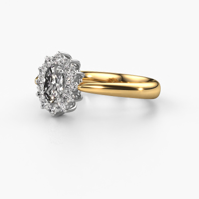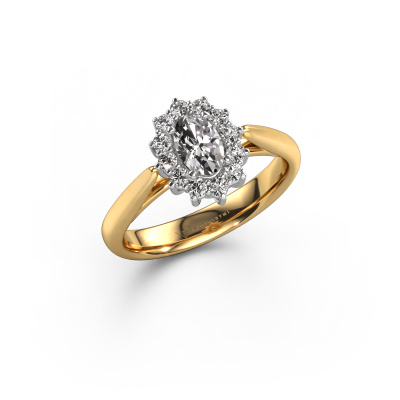 The ring shown above is called the Margien 1. We call this a Lady Diana ring. With an Lady Diana engagement ring, the larger centre gem is encircled by smaller side stones. This 14 Carat gold ring is set with a 0.40 crt oval diamond gemstone, surrounded by smaller diamonds side stones. It's the most famous and celebrated engagement ring in the world; The Lady Diana ring. Exclusively meant for the most remarkable person in your life! A truly stunning aspect of this Lady Diana ring is its centre diamond. The smaller side stones embracing the diamond emphasize the sparkle of the centre gemstone, this makes it look as though they merge into one big gemstone. Due to its design, this is even more apparent in the Lady Di ring. Our expert Goldsmiths are keen to create a unique ring just for you. We can even customize the ring to your liking in our own crafting studio. This piece of jewellery is made just for you by our master goldsmiths in our own studio.After receiving your order, our goldsmiths will start the creative process of making your Margien 1 engagement ring. We don't keep stock. This is advantageous because these costs will not be passed on to you. Therefore, we can offer jewellery at exceptionally low prices.Our designers and goldsmiths work together each day, creating new jewels. Perhaps you have found a nice traditional engagement ring somewhere, which can be used to customize your unique ring. Please feel free to contact us. We will make you an offer, based on a fair price/ quality ratio, which will amaze you.To make it easier for you, we offer a 30 day return policy. Check our terms and conditions.