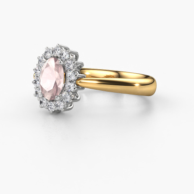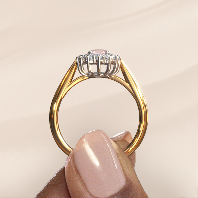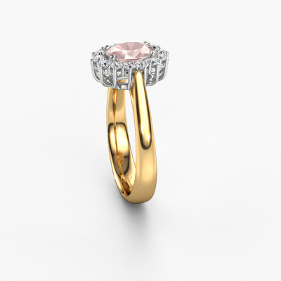 The ring shown above is called the Margien 1. We call this a Lady Diana ring. With an Lady Diana engagement ring, the larger centre gem is encircled by smaller side stones. This 14 Carat gold ring is set with a 7x5 mm oval morganite champagne gemstone, surrounded by smaller diamonds side stones. It's the most famous and celebrated engagement ring in the world; The Lady Diana ring. Exclusively meant for the most remarkable person in your life! A truly stunning aspect of this Lady Diana ring is its centre morganite champagne. The smaller side stones embracing the morganite champagne emphasize the sparkle of the centre gemstone, this makes it look as though they merge into one big gemstone. Due to its design, this is even more apparent in the Lady Di ring. Our expert Goldsmiths are keen to create a unique ring just for you. We can even customize the ring to your liking in our own crafting studio. This piece of jewellery is made just for you by our master goldsmiths in our own studio.After receiving your order, our goldsmiths will start the creative process of making your Margien 1 engagement ring. We don't keep stock. This is advantageous because these costs will not be passed on to you. Therefore, we can offer jewellery at exceptionally low prices.Our designers and goldsmiths work together each day, creating new jewels. Perhaps you have found a nice traditional engagement ring somewhere, which can be used to customize your unique ring. Please feel free to contact us. We will make you an offer, based on a fair price/ quality ratio, which will amaze you.To make it easier for you, we offer a 30 day return policy. Check our terms and conditions.