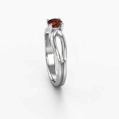 The ring shown above is called the Antonia rnd 1. We call this a solitaire ring because it contains a single gemstone. The engagement ring is made in platinum and has a round garnet of 5 mm. This extraordinary traditional platinum solitaire engagement ring is set with a beautiful round garnet to add sparkle to your proposal. The open prong setting allows light to strike the gemstone from various angles. Did you know a diamond represents everlasting love and fidelity? This makes it a perfect centrepiece. Our goldsmith carefully positions the gemstone of your choosing high on top of the ring, which makes it stand out. Each piece of jewellery is made just for you by our master goldsmiths in our own studio.Are you on a budget? Please feel free to contact us, so we can go discuss your options. We offer our engagement rings at guaranteed best price, because we make them to order. You won't find such a price anywhere else!Different styles of new rings are made daily by our team. Perhaps you have found a solitaire engagement ring somewhere. One you would like to give to your loved one. Please feel free to share your thoughts and design with our jewel designers. We would love to turn your design into a traditional engagement ring. You can follow the development of your ring design because we use very detailed 3D drawings. On top of that, you can order a dummy of the design. A dummy is a plastic ring, which can be shaped according your ring design. You can try it on and check if the engagement ring is up to standard. We will gladly send you a non-binding offer, based on a fair price/ quality ratio. The offer will baffle you, considering the quality of the ring and gemstones.To make it easier for you, we offer a 30 day return policy. Check our terms and conditions.