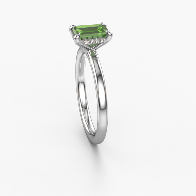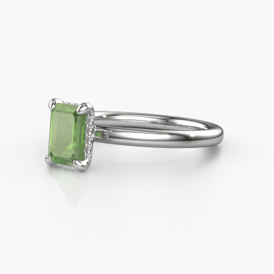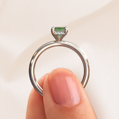 The ring shown above is called the Simone EME 2. We call this a solitaire ring because it contains a single gemstone. The engagement ring is made in platinum and has a emerald cut tourmaline green of 7x5 mm. This extraordinary traditional platinum solitaire engagement ring is set with a beautiful emerald cut tourmaline green to add sparkle to your proposal. The open prong setting allows light to strike the gemstone from various angles. Did you know a diamond represents everlasting love and fidelity? This makes it a perfect centrepiece. Our goldsmith carefully positions the gemstone of your choosing high on top of the ring, which makes it stand out. Each piece of jewellery is made by a team of passionate goldsmiths and jewel designers. This will make your crown jewel truly eye-catching.By using our modern techniques, we can design and customize the finest quality jewels with the utmost care for you. Our engagement rings are always priced 30 percent lower than other jewellers. We make engagement rings to order so we don't have to maintain a large stock. If you have a certain budget, we are more than happy to advice you accordingly.Do you have a specific ring in mind? One you came across somewhere. Please feel free to tell us your wishes and we will turn your design into a unique engagement ring. You can follow the development of your ring design because we use 3D drawings. This gives you a realistic preview of your design. We will gladly send you a non-binding offer, based on a fair price/ quality ratio. It will amaze you.To make it easier for you, we offer a 30 day return policy. Check our terms and conditions.