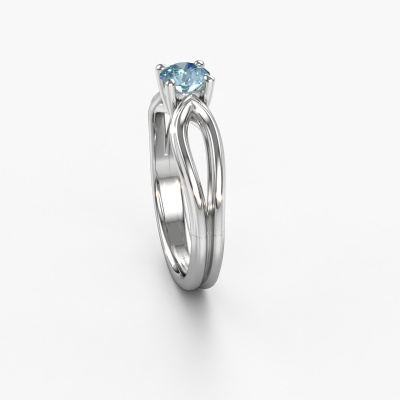 The ring shown above is called the Antonia rnd 1. We call this a solitaire ring because it contains a single gemstone. The engagement ring is made in 14 Carat white gold and has a round blue lab grown diamond of 5 mm. This extraordinary traditional white gold solitaire engagement ring is set with a beautiful round blue lab grown diamond to add sparkle to your proposal. The open prong setting allows light to strike the gemstone from various angles. Did you know a diamond represents everlasting love and fidelity? This makes it a perfect centrepiece. Our goldsmith carefully positions the gemstone of your choosing high on top of the ring, which makes it stand out. Each piece of jewellery is made just for you by our master goldsmiths in our own studio.Are you on a budget? Please feel free to contact us, so we can go discuss your options. We offer our engagement rings at guaranteed best price, because we make them to order. You won't find such a price anywhere else!Different styles of new rings are made daily by our team. Perhaps you have found a solitaire engagement ring somewhere. One you would like to give to your loved one. Please feel free to share your thoughts and design with our jewel designers. We would love to turn your design into a traditional engagement ring. You can follow the development of your ring design because we use very detailed 3D drawings. On top of that, you can order a dummy of the design. A dummy is a plastic ring, which can be shaped according your ring design. You can try it on and check if the engagement ring is up to standard. We will gladly send you a non-binding offer, based on a fair price/ quality ratio. The offer will baffle you, considering the quality of the ring and gemstones.To make it easier for you, we offer a 30 day return policy. Check our terms and conditions.