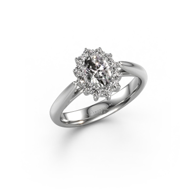 The ring shown above is called the Margien 1. We call this a Lady Diana ring. With an Lady Diana engagement ring, the larger centre gem is encircled by smaller side stones. This 14 Carat white gold ring is set with a 0.60 crt oval diamond gemstone, surrounded by smaller diamonds side stones. It's the most famous and celebrated engagement ring in the world; The Lady Diana ring. Exclusively meant for the most remarkable person in your life! A truly stunning aspect of this Lady Diana ring is its centre diamond. The smaller side stones embracing the diamond emphasize the sparkle of the centre gemstone, this makes it look as though they merge into one big gemstone. Due to its design, this is even more apparent in the Lady Di ring. Our expert Goldsmiths are keen to create a unique ring just for you. We can even customize the ring to your liking in our own crafting studio. This piece of jewellery is made just for you by our master goldsmiths in our own studio.After receiving your order, our goldsmiths will start the creative process of making your Margien 1 engagement ring. We don't keep stock. This is advantageous because these costs will not be passed on to you. Therefore, we can offer jewellery at exceptionally low prices.Our designers and goldsmiths work together each day, creating new jewels. Perhaps you have found a nice traditional engagement ring somewhere, which can be used to customize your unique ring. Please feel free to contact us. We will make you an offer, based on a fair price/ quality ratio, which will amaze you.To make it easier for you, we offer a 30 day return policy. Check our terms and conditions.