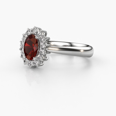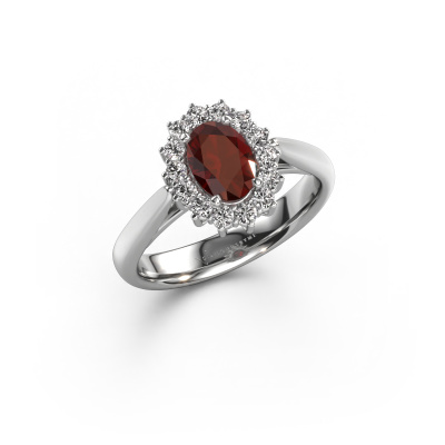 The ring shown above is called the Margien 1. We call this a Lady Diana ring. With an Lady Diana engagement ring, the larger centre gem is encircled by smaller side stones. This 14 Carat white gold ring is set with a 7x5 mm oval garnet gemstone, surrounded by smaller diamonds side stones. It's the most famous and celebrated engagement ring in the world; The Lady Diana ring. Exclusively meant for the most remarkable person in your life! A truly stunning aspect of this Lady Diana ring is its centre garnet. The smaller side stones embracing the garnet emphasize the sparkle of the centre gemstone, this makes it look as though they merge into one big gemstone. Due to its design, this is even more apparent in the Lady Di ring. Our expert Goldsmiths are keen to create a unique ring just for you. We can even customize the ring to your liking in our own crafting studio. This piece of jewellery is made just for you by our master goldsmiths in our own studio.After receiving your order, our goldsmiths will start the creative process of making your Margien 1 engagement ring. We don't keep stock. This is advantageous because these costs will not be passed on to you. Therefore, we can offer jewellery at exceptionally low prices.Our designers and goldsmiths work together each day, creating new jewels. Perhaps you have found a nice traditional engagement ring somewhere, which can be used to customize your unique ring. Please feel free to contact us. We will make you an offer, based on a fair price/ quality ratio, which will amaze you.To make it easier for you, we offer a 30 day return policy. Check our terms and conditions.