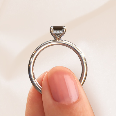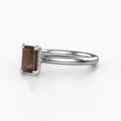 The ring shown above is called the Simone EME 2. We call this a solitaire ring because it contains a single gemstone. The engagement ring is made in 14 Carat white gold and has a emerald cut smokey quartz of 7x5 mm. This extraordinary traditional white gold solitaire engagement ring is set with a beautiful emerald cut smokey quartz to add sparkle to your proposal. The open prong setting allows light to strike the gemstone from various angles. Did you know a diamond represents everlasting love and fidelity? This makes it a perfect centrepiece. Our goldsmith carefully positions the gemstone of your choosing high on top of the ring, which makes it stand out. Each piece of jewellery is made by a team of passionate goldsmiths and jewel designers. This will make your crown jewel truly eye-catching.By using our modern techniques, we can design and customize the finest quality jewels with the utmost care for you. Our engagement rings are always priced 30 percent lower than other jewellers. We make engagement rings to order so we don't have to maintain a large stock. If you have a certain budget, we are more than happy to advice you accordingly.Do you have a specific ring in mind? One you came across somewhere. Please feel free to tell us your wishes and we will turn your design into a unique engagement ring. You can follow the development of your ring design because we use 3D drawings. This gives you a realistic preview of your design. We will gladly send you a non-binding offer, based on a fair price/ quality ratio. It will amaze you.To make it easier for you, we offer a 30 day return policy. Check our terms and conditions.