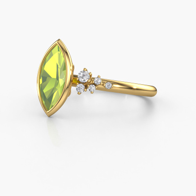 This 14 Carat gold ring is called Aliyah MRQ and is set with 11x5.5 mm peridot. Are you looking for a trendy gold engagement ring which you can customize to your own liking? This trendy engagement ring is set with peridot which is carefully selected for this specific ring in order to create the best effect. Our expert goldsmith will create your ring in our own crafting studio, where the peridot will be set with great care. The ring will then be polished till it shines perfectly. Nothing but the best for the love of your life! The great thing about our online tool is, that you can compile your own jewellery into a unique, personalized piece. Each piece of jewellery is made by a team of passionate goldsmiths and jewel designers. This will make your crown jewel truly eye-catching.By using our modern techniques, we can design and customize the finest quality jewels with the utmost care for you. Our engagement rings are always priced 30 percent lower than other jewellers. We make engagement rings to order so we don't have to maintain a large stock. If you have a certain budget, we are more than happy to advice you accordingly.Our designers and goldsmiths work together each day, creating new jewels. Perhaps you have found a nice trendy engagement ring somewhere, which can be used to customize your unique ring. Please feel free to contact us. We will make you an offer, based on a fair price/ quality ratio, which will amaze you.To make it easier for you, we offer a 30 day return policy. Check our terms and conditions.