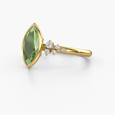 This 14 Carat gold ring is called Aliyah MRQ and is set with 11x5.5 mm tourmaline green. Are you looking for a trendy gold engagement ring which you can customize to your own liking? This trendy engagement ring is set with tourmaline green which is carefully selected for this specific ring in order to create the best effect. Our expert goldsmith will create your ring in our own crafting studio, where the tourmaline green will be set with great care. The ring will then be polished till it shines perfectly. Nothing but the best for the love of your life! The great thing about our online tool is, that you can compile your own jewellery into a unique, personalized piece. Each piece of jewellery is made by a team of passionate goldsmiths and jewel designers. This will make your crown jewel truly eye-catching.By using our modern techniques, we can design and customize the finest quality jewels with the utmost care for you. Our engagement rings are always priced 30 percent lower than other jewellers. We make engagement rings to order so we don't have to maintain a large stock. If you have a certain budget, we are more than happy to advice you accordingly.Our designers and goldsmiths work together each day, creating new jewels. Perhaps you have found a nice trendy engagement ring somewhere, which can be used to customize your unique ring. Please feel free to contact us. We will make you an offer, based on a fair price/ quality ratio, which will amaze you.To make it easier for you, we offer a 30 day return policy. Check our terms and conditions.